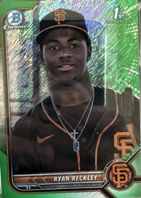 Auctions Ending Soon for Ryan Reckley 2022 Bowman Chrome #BCP-163 Prospects - Green Shimmer Refractor /99 (1st) RAW