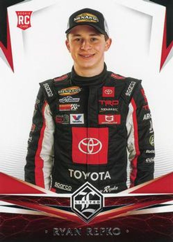 The Ryan Repko 2021 Chronicles NASCAR #4 Limited Rookie card is 1 of 41 Ryan Repko's card variations in the 2021 Chronicles NASCAR set being tracked by Sports Card Investor, including Limited Autographs, Obsidian, Phoenix, Phoenix Autographs, and Phoenix - Green.