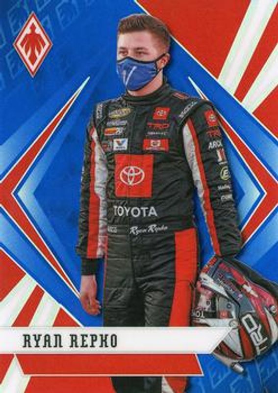 The Ryan Repko 2021 Chronicles NASCAR #13 Phoenix - Blue /199 Rookie card is 1 of 41 Ryan Repko's card variations in the 2021 Chronicles NASCAR set being tracked by Sports Card Investor, including Limited, Limited Autographs, Obsidian, Phoenix, and Phoenix Autographs.