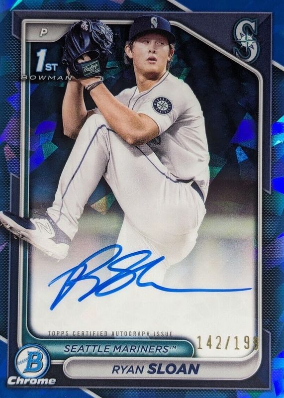 RYAN SLOAN 2024 BOWMAN CHROME 1ST SAPPHIRE REFRACTOR MARINERS AUTO /199 Q3735