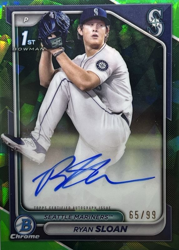 RYAN SLOAN 2024 BOWMAN CHROME DRAFT 1ST SAPPHIRE GREEN AUTO #/99 📈 Mariners