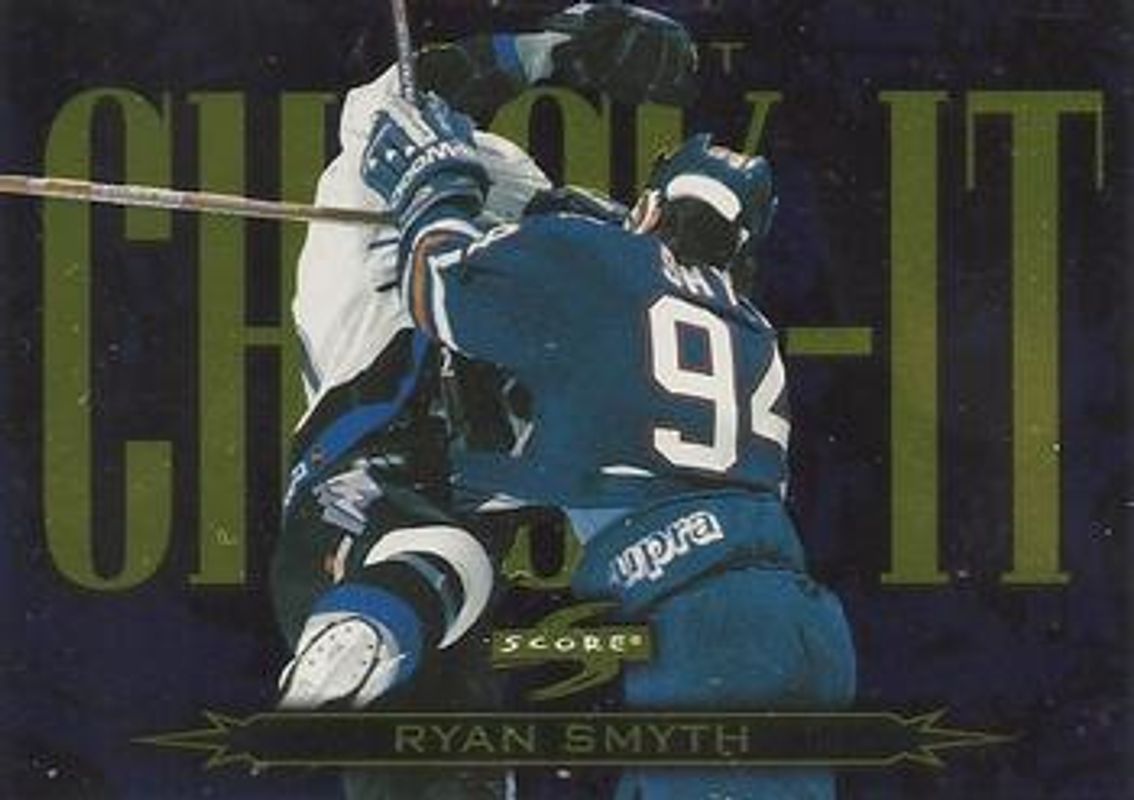 The Ryan Smyth 1997 Score #8 Check It card is 1 of 4 Ryan Smyth's card variations in the 1997 Score set being tracked by Sports Card Investor, including Base, Artist's Proofs, and Golden Blades.