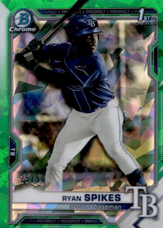The Ryan Spikes 2021 Bowman Draft Sapphire Edition #BDC-63 Chrome - Green /50 (1st) card in Raw condition has not changed in price in the last 30 days and was last sold for $3.30 .