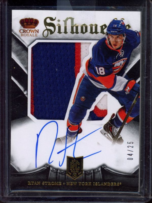 The Ryan Strome 2013 Panini Rookie Anthology #115 2013 Panini Crown Royale Update: Rookie Silhouette Patch /25 card is 1 of 51 Ryan Strome's card variations in the 2013 Panini Rookie Anthology set being tracked by Sports Card Investor, including Purple /1, 2013 Panini Update, 2013 Panini Update:, 2013 Panini Update: Rookie Autographs, and 2013 Panini Update: Rookie Autographs Spring Expo Cracked Ice - Black.