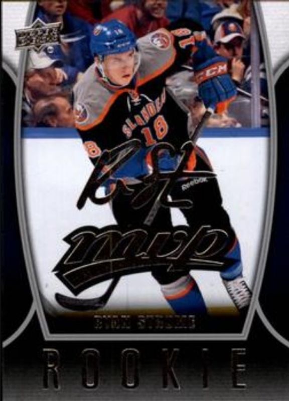 The Ryan Strome 2013 Upper Deck #89 2013 Upper Deck MVP Rookie card is 1 of 16 Ryan Strome's card variations in the 2013 Upper Deck set being tracked by Sports Card Investor, including Young Guns Base, Young Guns Canvas, Young Guns - Acetate, Young Guns - Jumbo, and Young Guns - UD Exclusives /100.