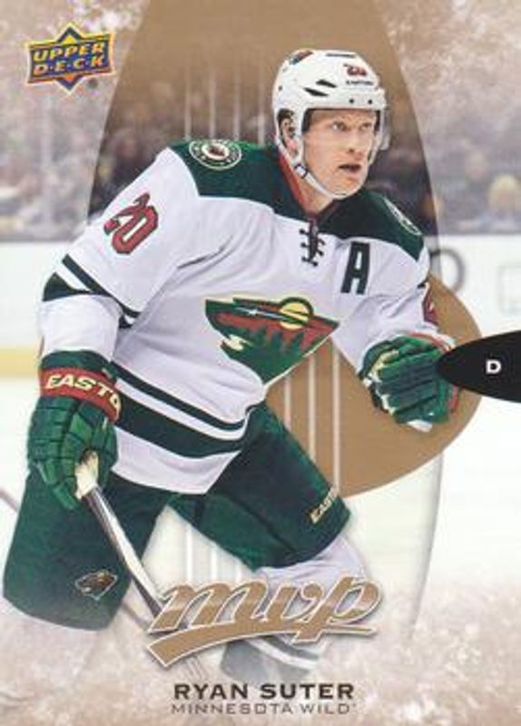 The Ryan Suter 2016 Upper Deck MVP #209 Base card is 1 of 10 Ryan Suter's card variations in the 2016 Upper Deck MVP set being tracked by Sports Card Investor, including Colors & Contours, Green Script, Silver Script, Gold Script /135, and Super Script /25.
