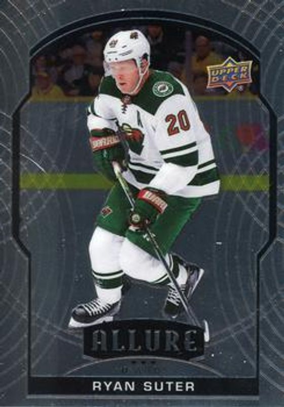 The Ryan Suter 2020 Upper Deck Allure #15 Base card is 1 of 31 Ryan Suter's card variations in the 2020 Upper Deck Allure set being tracked by Sports Card Investor, including 2005 Shield, Black Rainbow, Blue China, Leopard, and Magenta.
