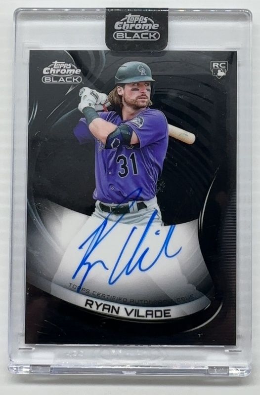 Ryan Vilade's Baseball cards are available in at least 17 sets. Ryan Vilade's biggest 7-day price movers are 2022 Topps Chrome Black #CBA-RV Autographs, 2022 Topps Chrome Black #CBA-RV Autographs - Gold Mini Diamond Refractor /50, and 2022 Topps Chrome Black #CBA-RV Autographs - Green Refractor /99.
