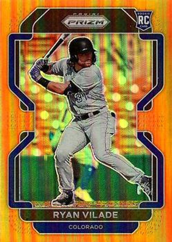 The Ryan Vilade 2022 Prizm #163 Neon Orange /100 Rookie card is 1 of 69 Ryan Vilade's card variations in the 2022 Prizm set being tracked by Sports Card Investor, including Base, Blue, Blue Velocity, Carolina Blue, and Cosmic Haze.