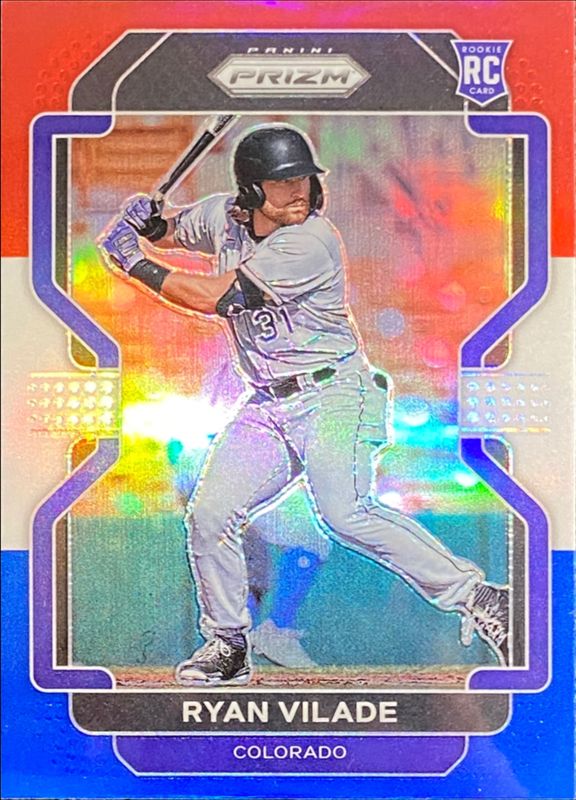 The Ryan Vilade 2022 Prizm #163 Red White Blue Rookie card is 1 of 69 Ryan Vilade's card variations in the 2022 Prizm set being tracked by Sports Card Investor, including Base, Blue, Blue Velocity, Carolina Blue, and Cosmic Haze.