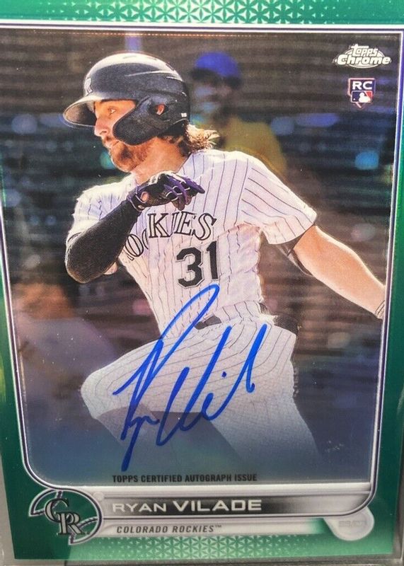 2022 Topps Chrome Ryan Vilade RC Rockies GREEN Refractor Auto SP 99/99 Book End