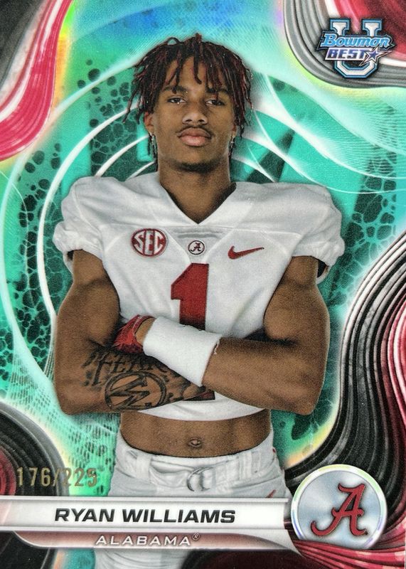 RYAN WILLIAMS 2024 Bowman U Best AQUA Refractor /225 🐘 Bama WR1