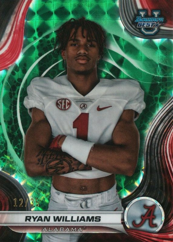 The Ryan Williams 2024 Bowman Best University #82 Lime Green Geometric Refractor /35 card in Raw condition has not changed in price in the last 30 days and was last sold for $37.99 .