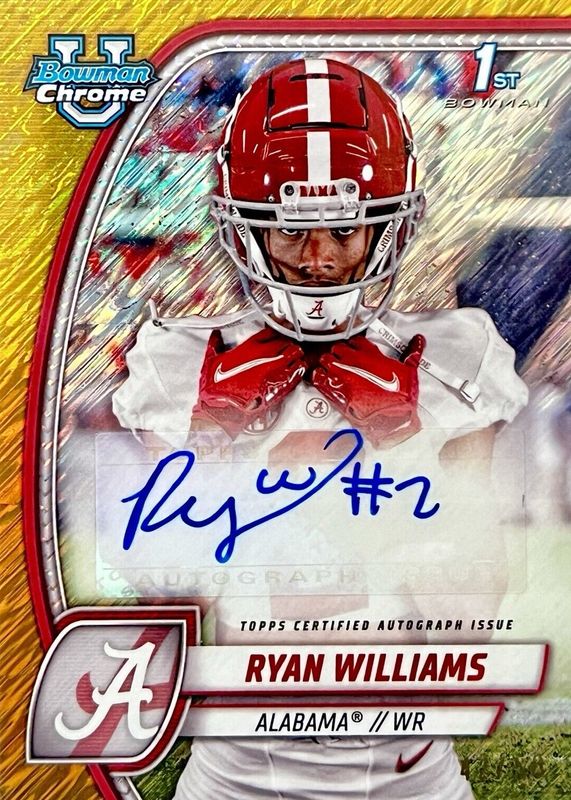 RYAN WILLIAMS 2024 BOWMAN U CHROME 1ST GOLD SHIMMER AUTO /50 RC ROOKIE Alabama