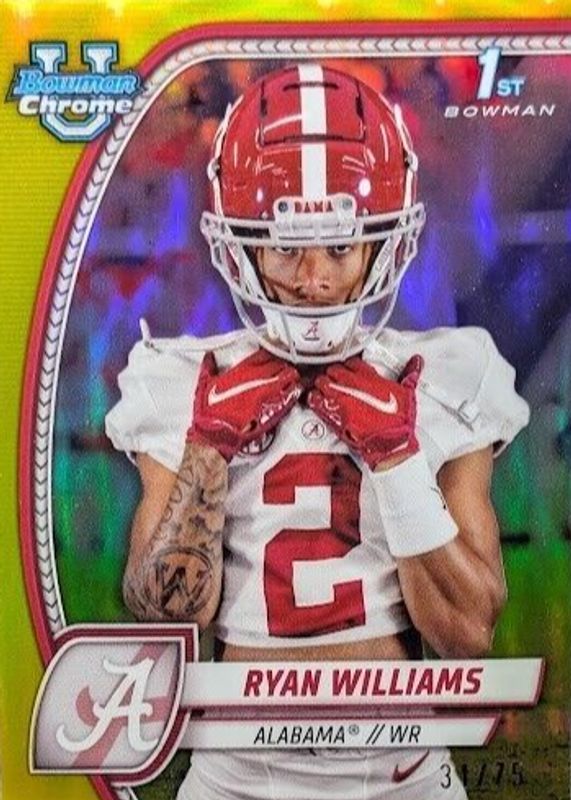 2024 RYAN WILLIAMS /75 1ST YELLOW BOWMAN U UNIVERSITY CHROME ALABAMA RC ROOKIE