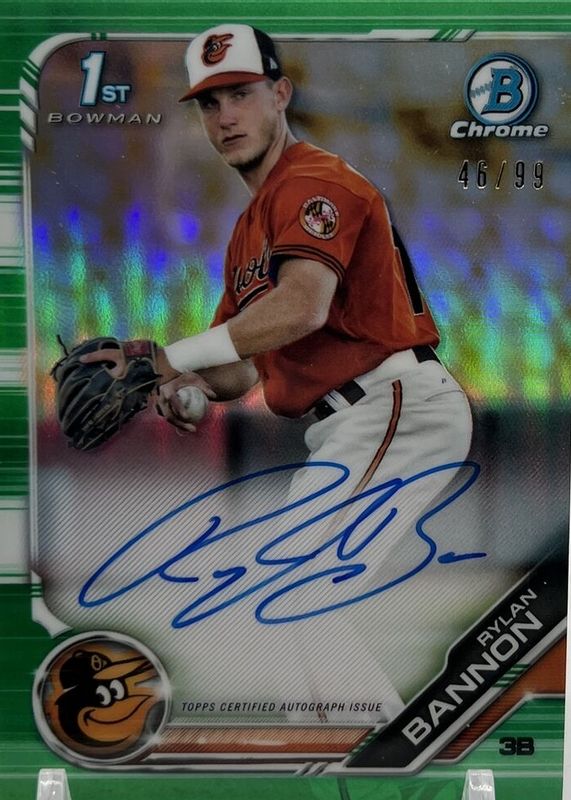 2019 Bowman Chrome Rylan Bannon Green Refractor Prospect Auto #26/99 Orioles