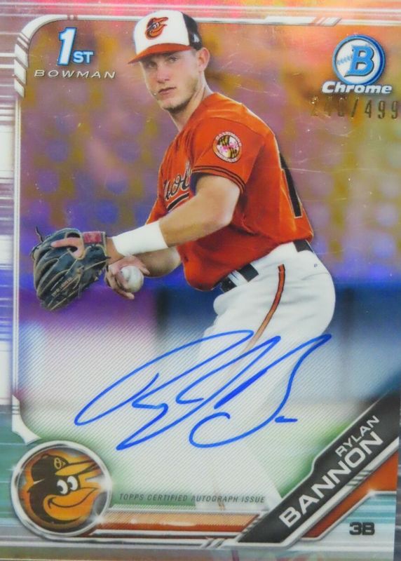 RYLAN BANNON 2019 Bowman Chrome Prospects Refractor AUTO 123/499 #RB Orioles 1st