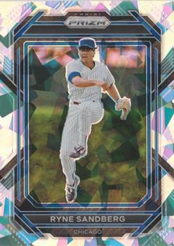 The Ryne Sandberg 2023 Prizm #111 Ice card is 1 of 32 Ryne Sandberg's card variations in the 2023 Prizm set being tracked by Sports Card Investor, including Base, Blue Ice, Giraffe, Green Ice, and Hyper.