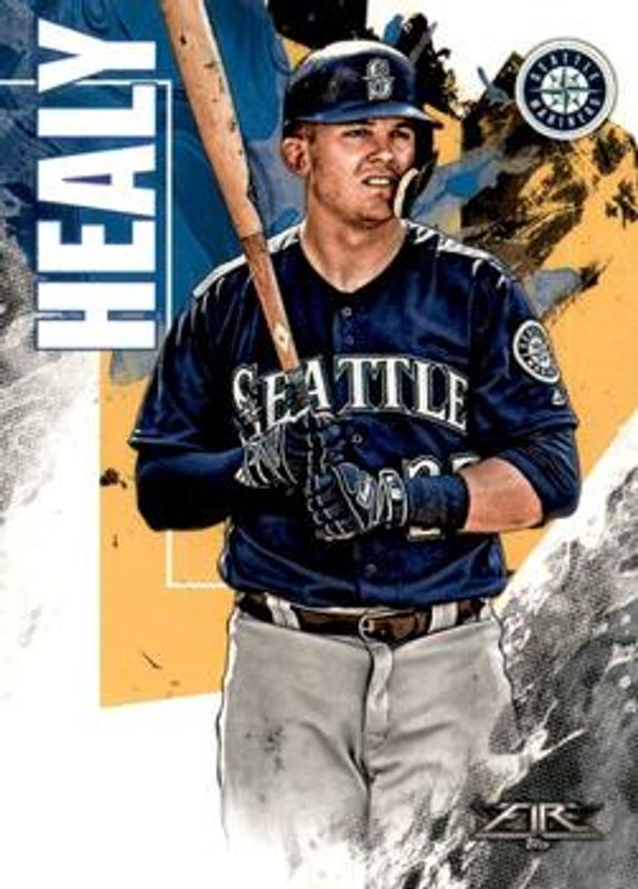 The Ryon Healy 2019 Topps Fire #185 Base card is 1 of 9 Ryon Healy's card variations in the 2019 Topps Fire set being tracked by Sports Card Investor, including Flame, Gold Minted, Onyx, Orange /299, and Green /199.
