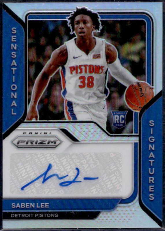 The Saben Lee 2020 Prizm #SS-SLE Sensational Signatures - Silver Rookie card is 1 of 67 Saben Lee's card variations in the 2020 Prizm set being tracked by Sports Card Investor, including Base, Choice Blue Yellow Green, Fast Break, Green, and Green Ice.