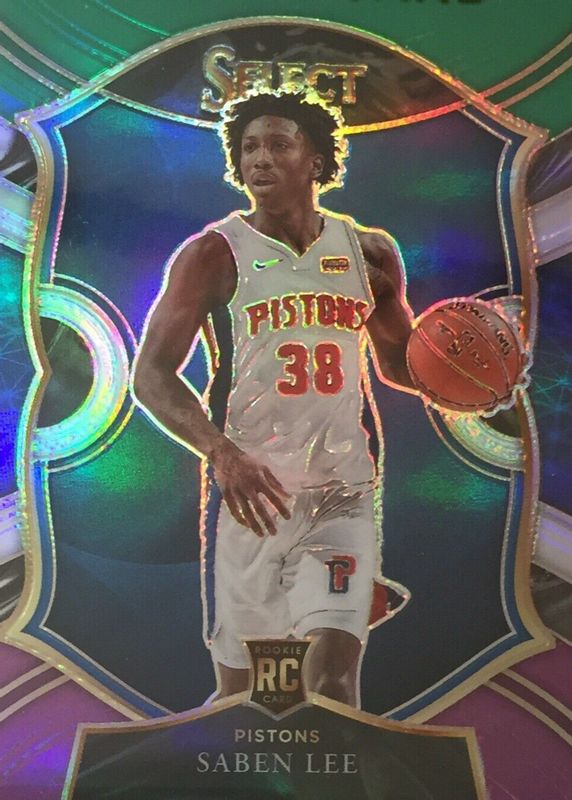 2020-21 Panini Select Saben Lee 97 Green White Purple RC Detroit Pistons