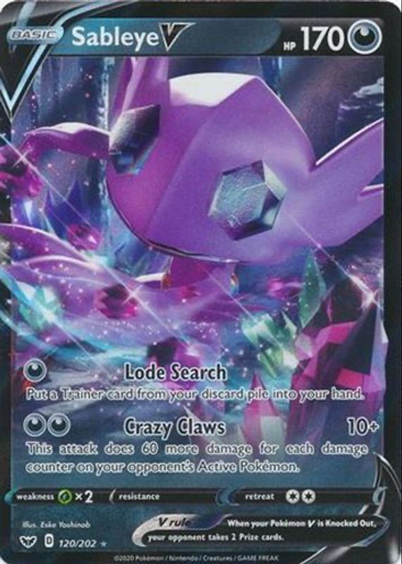 Sableye V - 120/202 - Pokemon Sword & Shield Base Set Ultra Rare Card NM