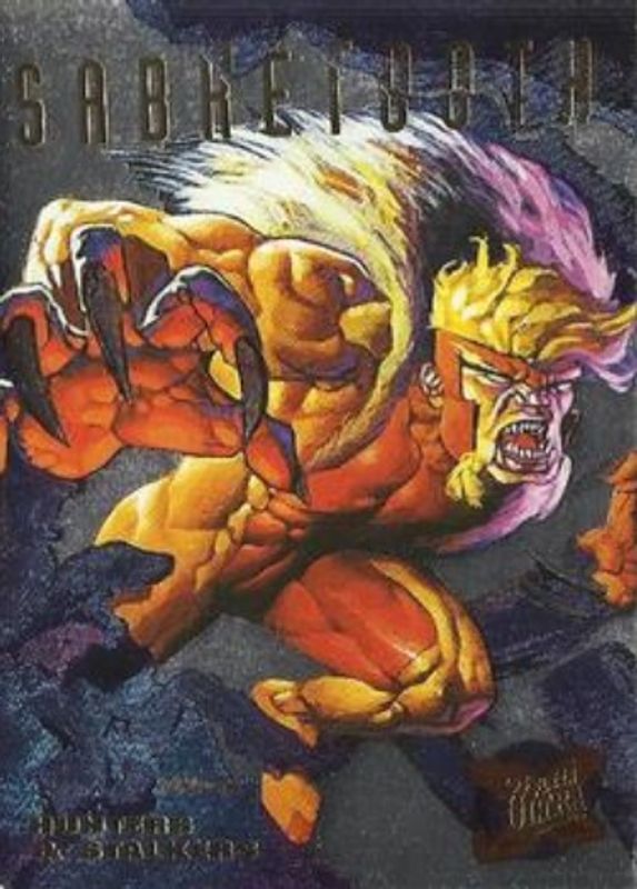 The Sabretooth 1995 Fleer Ultra X-Men #6 Hunters & Stalkers Silver card is 1 of 5 Sabretooth's card variations in the 1995 Fleer Ultra X-Men set being tracked by Sports Card Investor, including #41 Base, #63 Base, #6 Hunters & Stalkers Gold, and #6 Hunters & Stalkers Rainbow.