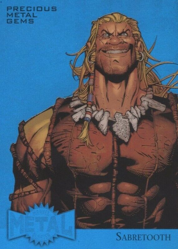 The Sabretooth 2015 Fleer Retro #33 Precious Metal Gems Blue /50 card in Raw condition has not changed in price in the last 30 days and was last sold for $249.99 .