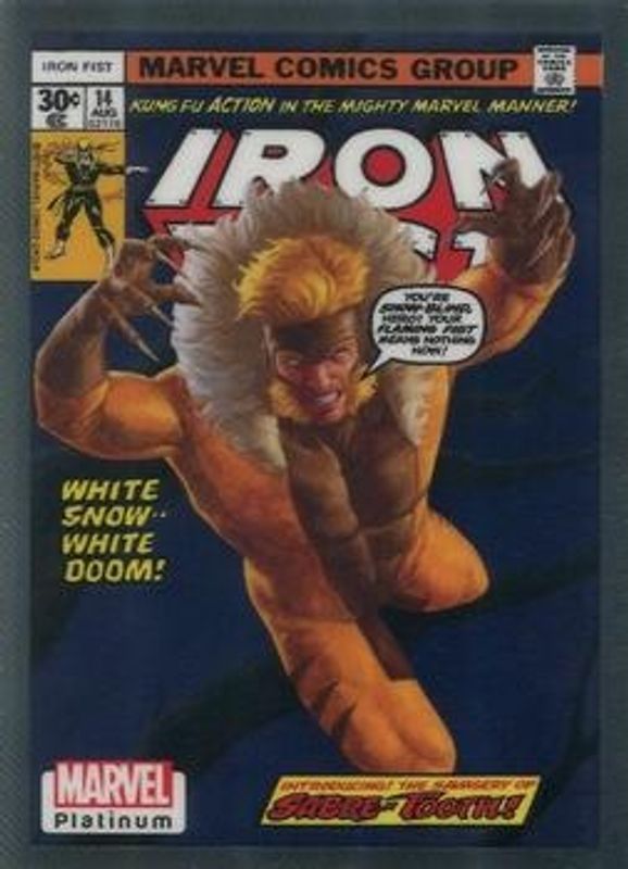 The Sabretooth 2023 Upper Deck Marvel Platinum #WI23 Cover Variant card is 1 of 86 Sabretooth's card variations in the 2023 Upper Deck Marvel Platinum set being tracked by Sports Card Investor, including #189 Base, #23 Base, #189 Black Rainbow, #23 Black Rainbow, and #23 Blue Rainbow.