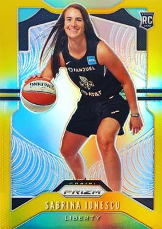 The Sabrina Ionescu 2020 Prizm WNBA #89 Gold /10 Rookie card is 1 of 29 Sabrina Ionescu's card variations in the 2020 Prizm WNBA set being tracked by Sports Card Investor, including Base, #89 Base, #89 Green, #89 Green Ice, and #89 Hyper.