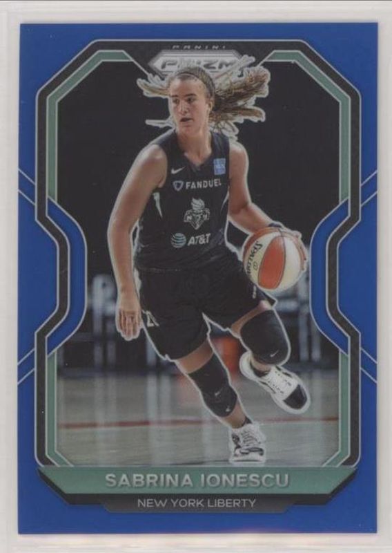 The Sabrina Ionescu 2021 Prizm WNBA #39 Blue /149 card is 1 of 79 Sabrina Ionescu's card variations in the 2021 Prizm WNBA set being tracked by Sports Card Investor, including Base, Green, Green Ice, Hyper, and Ice.