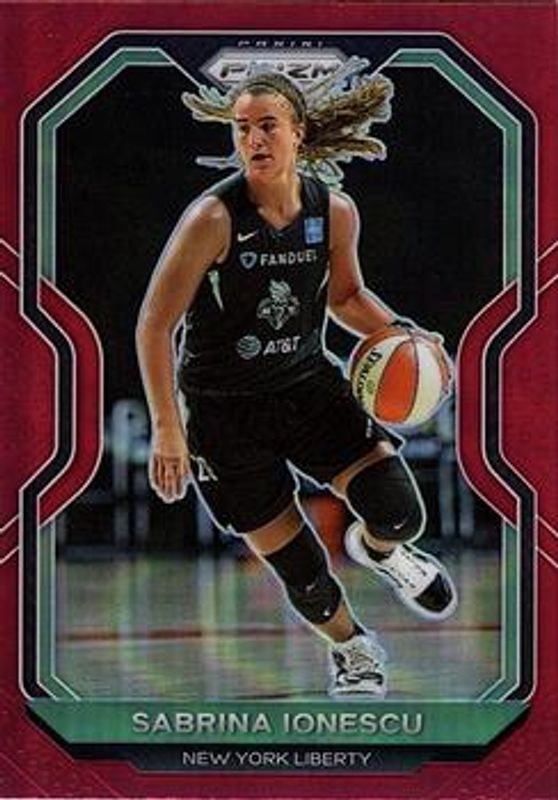 The Sabrina Ionescu 2021 Prizm WNBA #39 Red /299 card is 1 of 79 Sabrina Ionescu's card variations in the 2021 Prizm WNBA set being tracked by Sports Card Investor, including Base, Green, Green Ice, Hyper, and Ice.