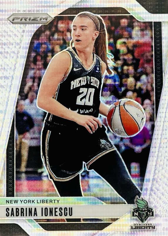 This card is 1 of 65 Sabrina Ionescu's card variations in the 2024 Prizm WNBA set being tracked by Sports Card Investor, including Base, Blue Velocity, Checkerboard, Green, and Ice.