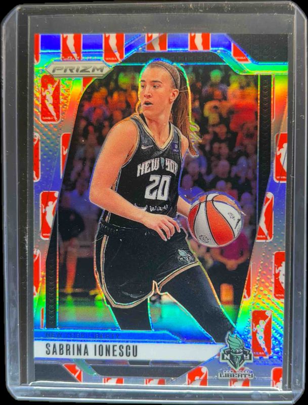 The Sabrina Ionescu 2024 Prizm WNBA #17 WNBA Logo card is 1 of 65 Sabrina Ionescu's card variations in the 2024 Prizm WNBA set being tracked by Sports Card Investor, including Base, Blue Velocity, Checkerboard, Green, and Ice.