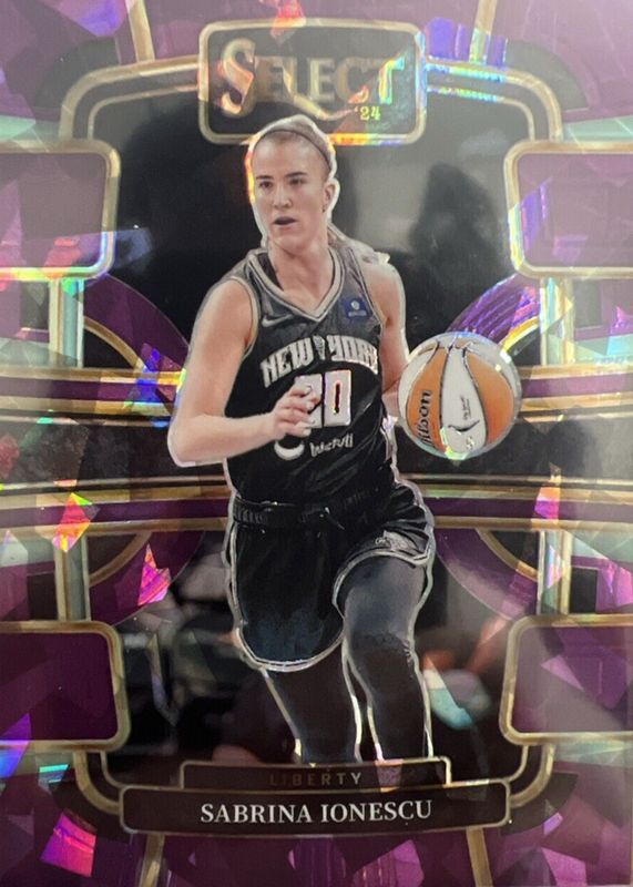 The Sabrina Ionescu 2024 Select WNBA #63 Concourse Purple Ice /149 card in Raw condition has not changed in price in the last 30 days and was last sold for $18.37 .