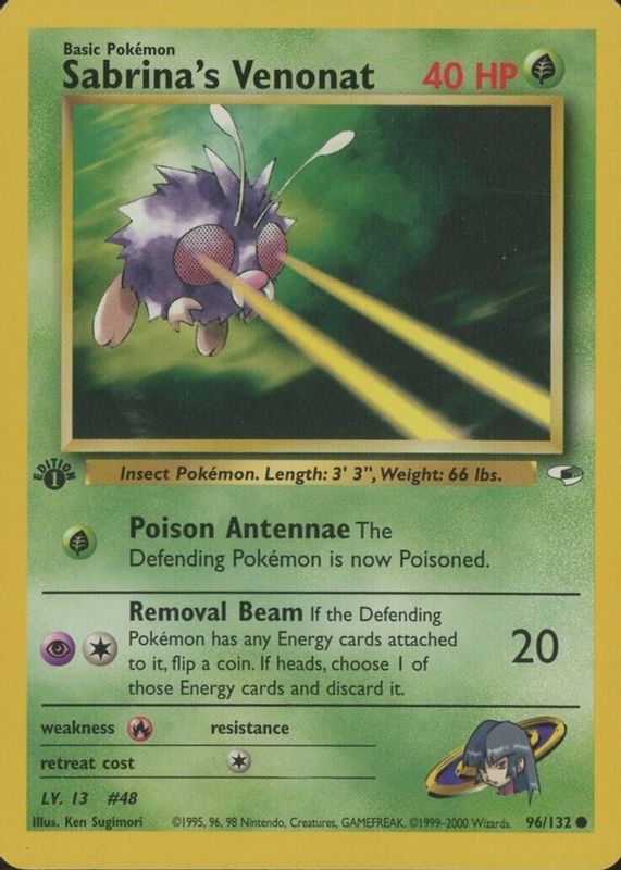 The Sabrina's Venonat 2000 Gym Heroes #096/132 1st Edition card in Raw TCG (Near Mint) condition has moved up $3.10 (+124%) in the last 30 days and was last sold for $5.59 .