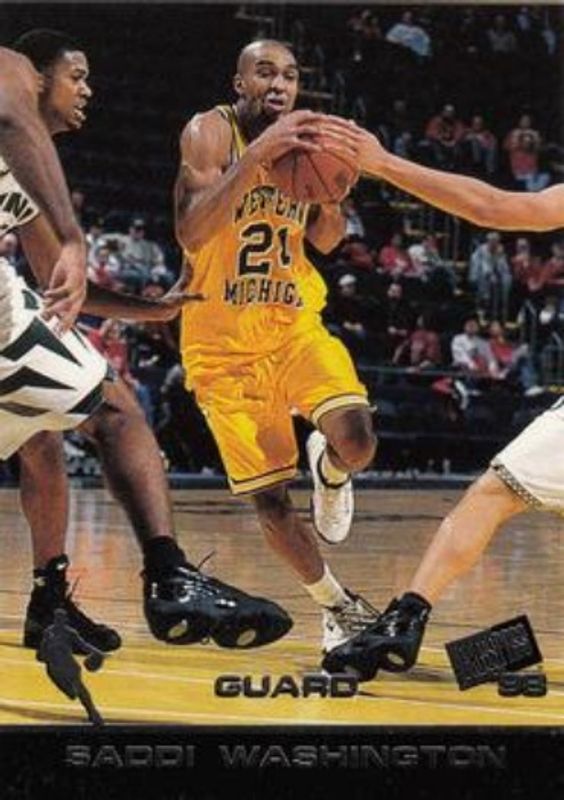 The Saddi Washington 1998 Press Pass Flagship #21 In The Zone card is 1 of 8 Saddi Washington's card variations in the 1998 Press Pass Flagship set being tracked by Sports Card Investor, including Base, Red, Reflectors, Torquers, and Solos /1.