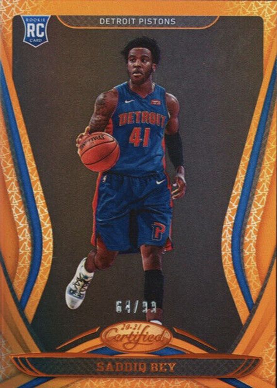 This card is 1 of 11 Saddiq Bey's card variations in the 2020 Certified set being tracked by Sports Card Investor, including Base, Asia Exclusive, Asia Exclusive Gold, Asia Exclusive Red, and Mirror Blue.