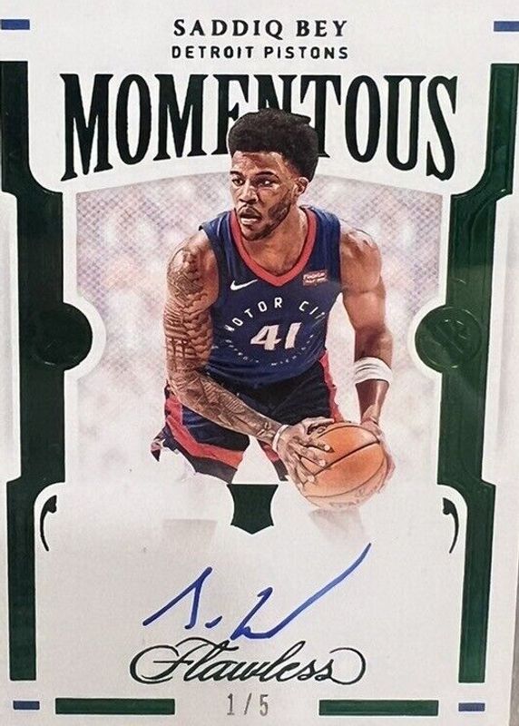 Saddiq Bey 2020 Flawless #MOM-BEY Momentous Autographs - Emerald /5 Rookie RAW Price Guide