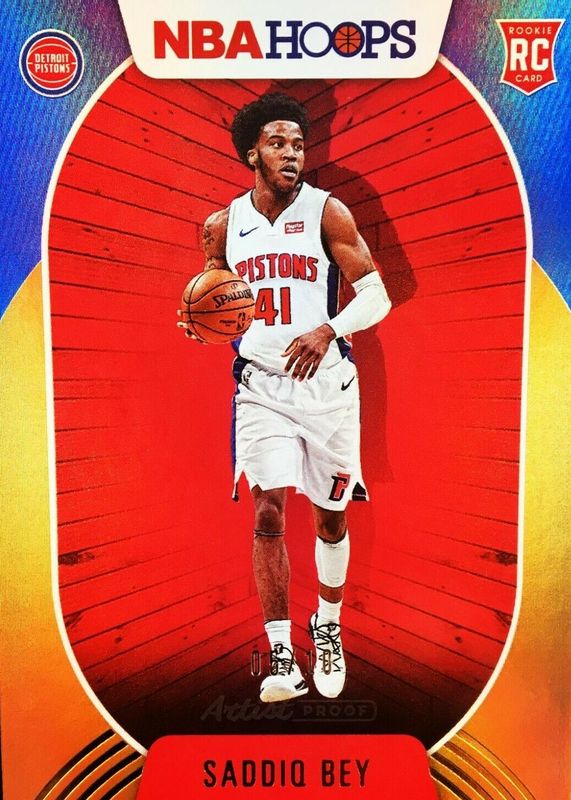 The Saddiq Bey 2020 Hoops #237 Artist Proof Gold /10 Rookie card in Raw condition has not changed in price in the last 30 days and was last sold for $150.00 .