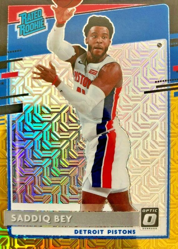 This card is 1 of 82 Saddiq Bey's card variations in the 2020 Optic set being tracked by Sports Card Investor, including Base, Blue Pulsar, Blue Velocity, Checkerboard, and Choice.