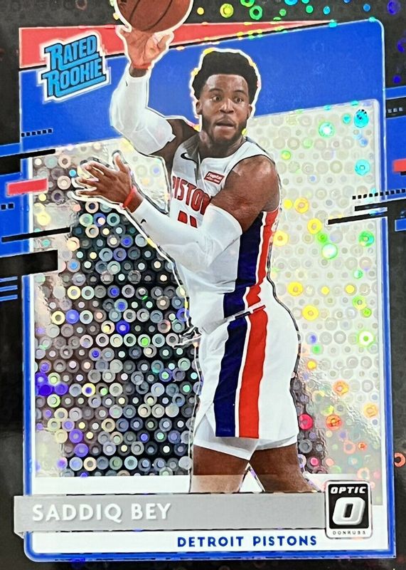This card is 1 of 82 Saddiq Bey's card variations in the 2020 Optic set being tracked by Sports Card Investor, including Base, Blue Pulsar, Blue Velocity, Checkerboard, and Choice.
