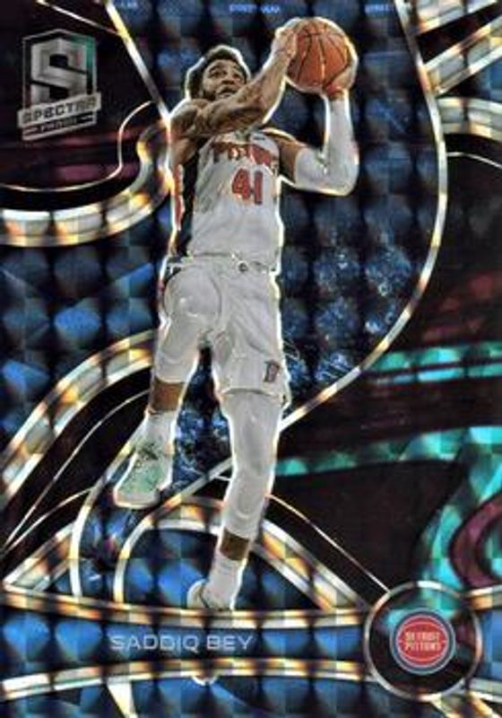 The Saddiq Bey 2021 Spectra #69 Interstellar /49 card is 1 of 26 Saddiq Bey's card variations in the 2021 Spectra set being tracked by Sports Card Investor, including Base, 75th Anniversary, Asia, Asia Black & White, and Asia Green.