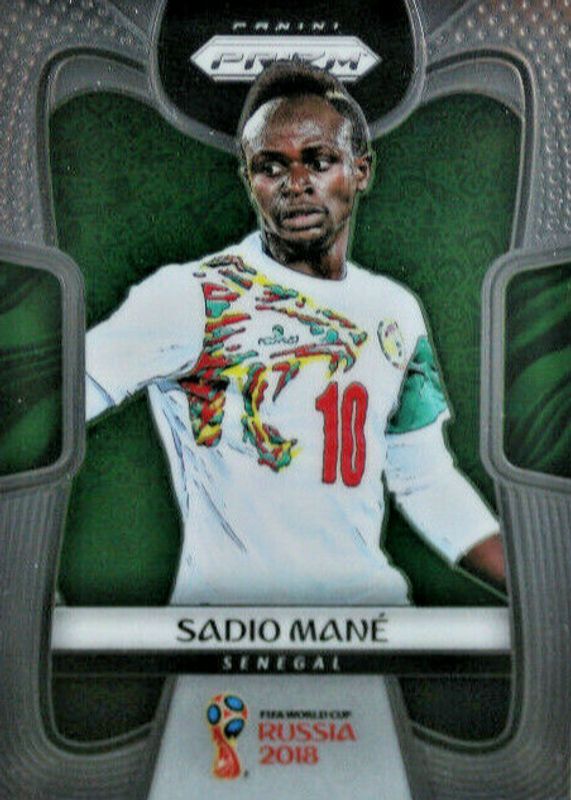 This card is 1 of 21 Sadio Mane's card variations in the 2018 Prizm World Cup set being tracked by Sports Card Investor, including Black & Gold Wave, Green & Orange Wave, Hyper, Lazer, and Mojo.