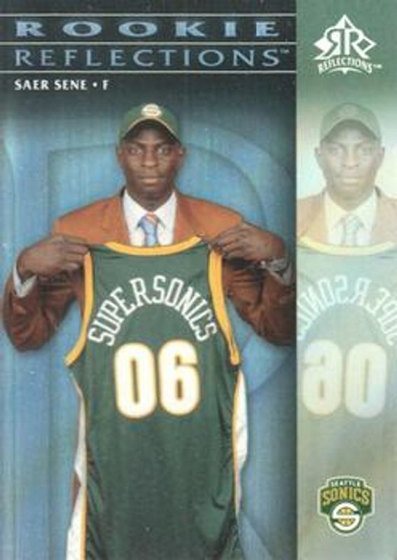 The Saer Sene 2006 Upper Deck Reflections #130 Base /150 Rookie card is 1 of 5 Saer Sene's card variations in the 2006 Upper Deck Reflections set being tracked by Sports Card Investor, including Gold /299, Copper /99, Blue /49, and Black /1.