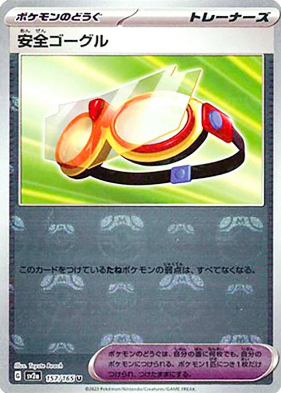 The Safety Goggles 2023 Japanese Scarlet & Violet: 151 #157/165 Master Ball Reverse Holo card in Raw TCG (Near Mint) condition has not changed in price in the last 30 days and was last sold for $0.99 .