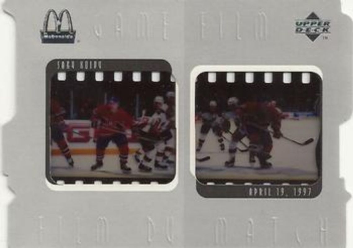 The Saku Koivu 1997 Upper Deck Ice McDonald's #F8 Game Film card is 1 of 2 Saku Koivu's card variations in the 1997 Upper Deck Ice McDonald's set being tracked by Sports Card Investor, including Base.