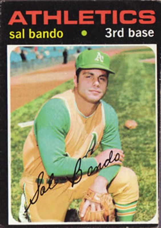 The Sal Bando 1971 Topps #285 Base card is 1 of 3 Sal Bando's card variations in the 1971 Topps set being tracked by Sports Card Investor, including Coins, and Scratch Offs.