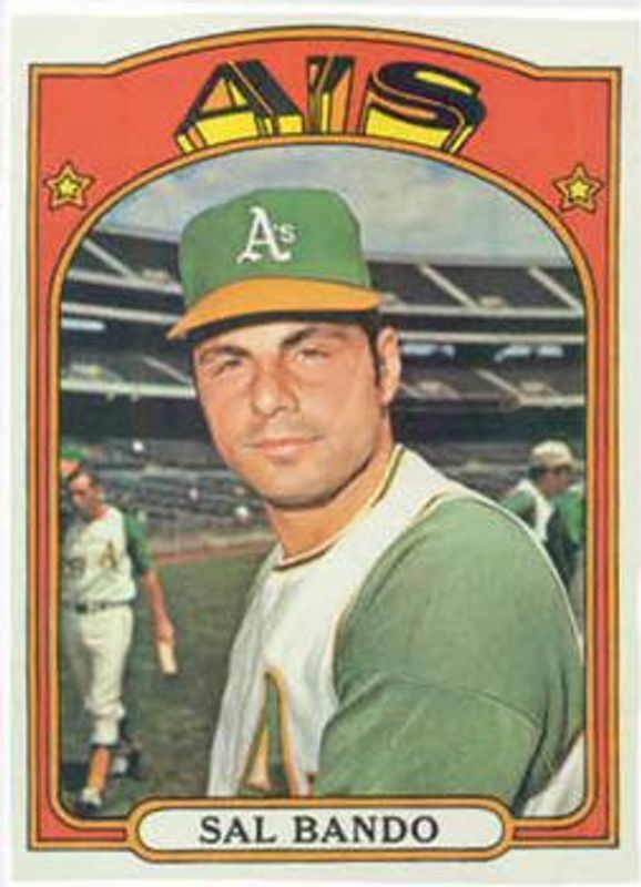 The Sal Bando 1972 Topps #650 Base card is 1 of 2 Sal Bando's card variations in the 1972 Topps set being tracked by Sports Card Investor, including Base.