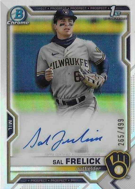 Sal Frelick 2021 Bowman Chrome Prospect 1st Auto Refractor /499 Brewers